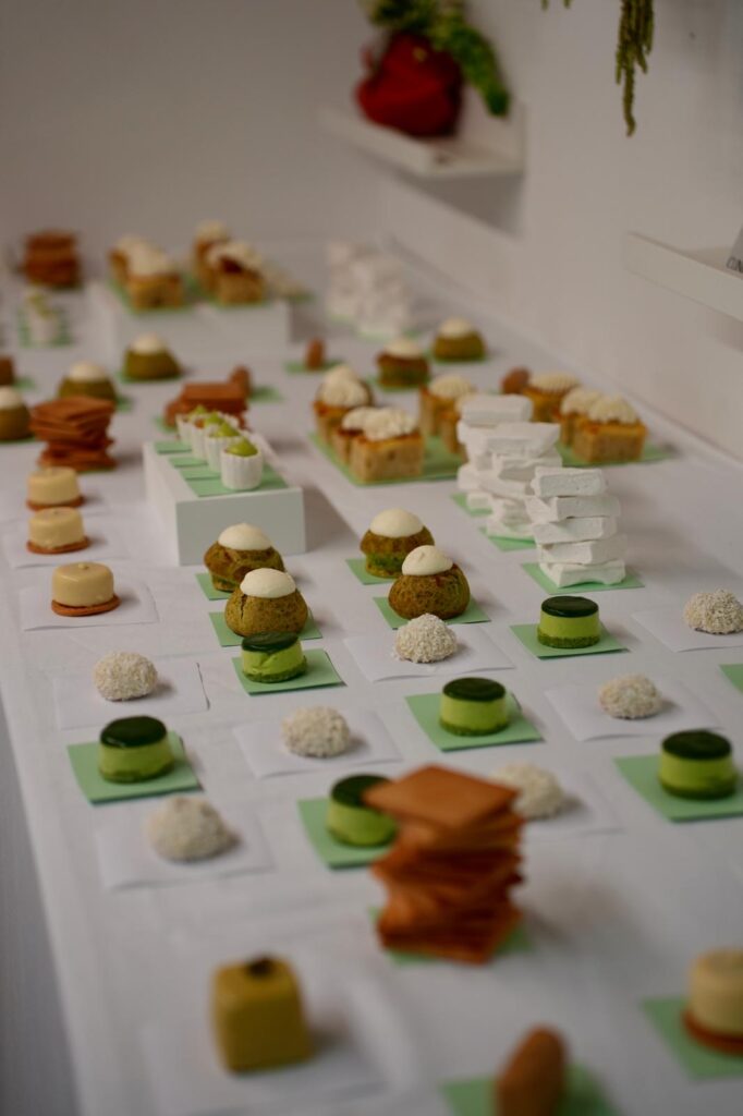 W ramach realizacji cateringu dla Clinique zadbaliśmy o maksymalną personalizację menu pod względem kolorystyki i formy. Serwowaliśmy wegańską matchę w brandowanych butelkach, a całość utrzymana była w pastelowych odcieniach bieli i zieleni. Każdy detal został dopasowany do estetyki marki i charakteru wydarzenia.