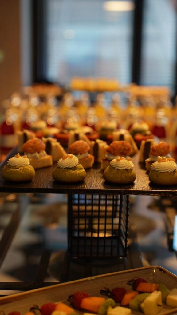 Podczas cyklu spotkań Power Dressing organizowanych przez Modivo, przygotowaliśmy spersonalizowane menu dopasowane do tematyki każdego wydarzenia. Na jednym ze spotkań serwowaliśmy skandynawskie smaki – w tym kultowe köttbullar, cynamonki oraz małe kanapeczki znane jako smørrebrød. Dania były podawane na bieżąco przez naszego szefa kuchni, co podkreślało indywidualny charakter każdego spotkania. Uzupełnieniem oferty były brandowane lemoniady z logotypem organizatorów.